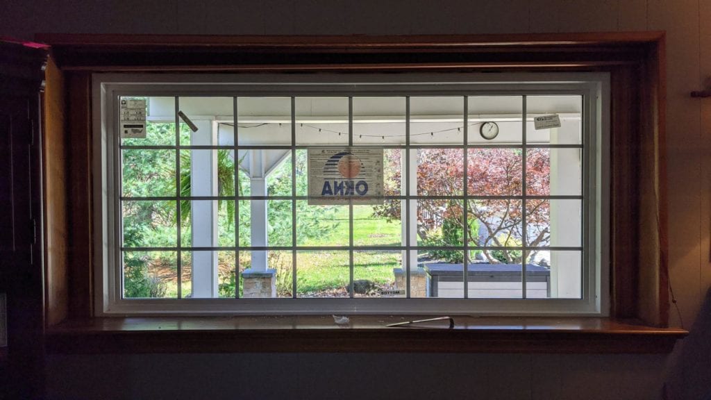 This white Okna 500 series vinyl replacement picture window has a fully insulated frame, low-e/argon gas glass package, and features the exact grid pattern the customer was looking for. This install was completed in just one day by our factory trained vinyl replacement window installers in Branchburg, NJ 08876.